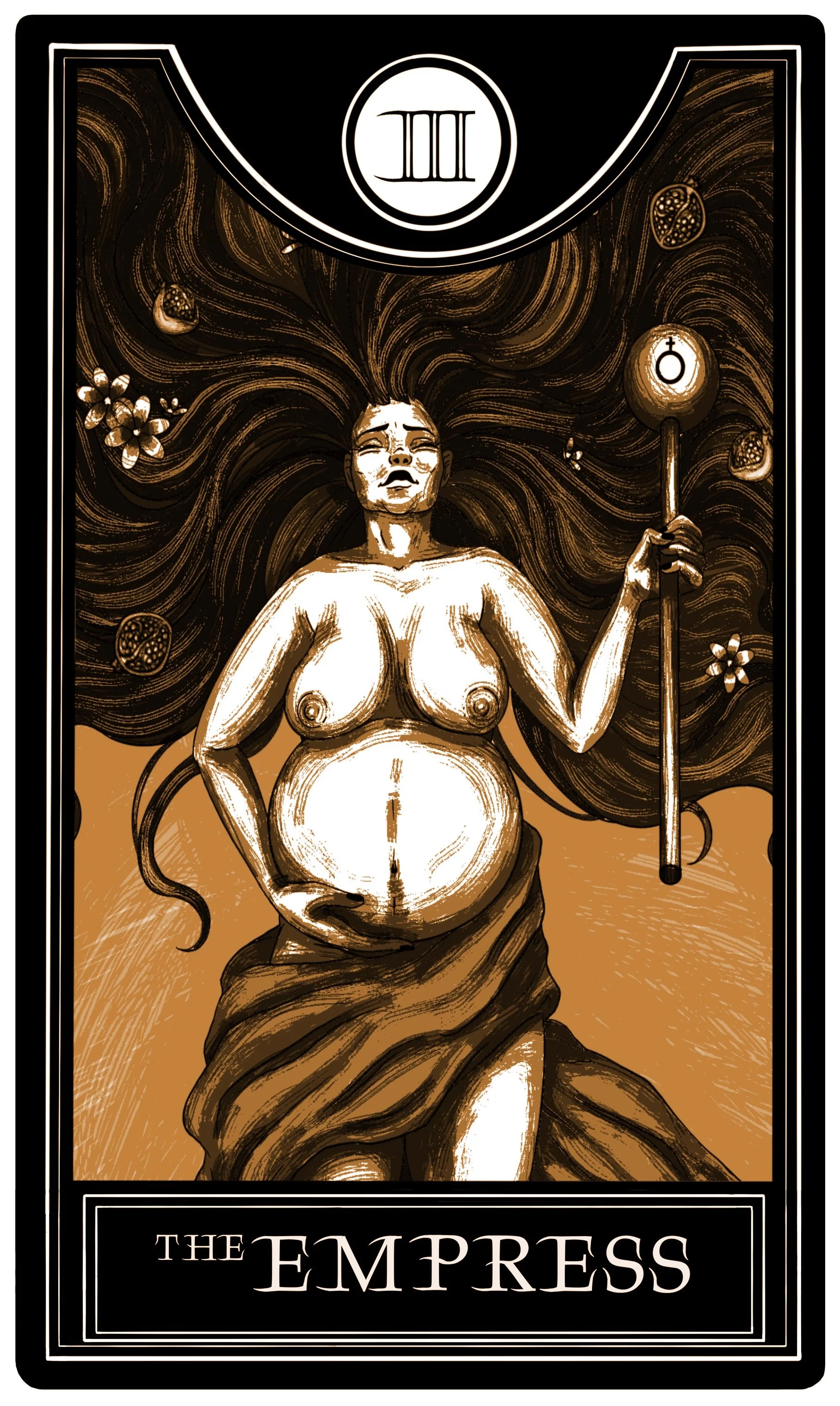 Part of the Crescent Crow tarot card series: The Empress, The Emperor, & Death